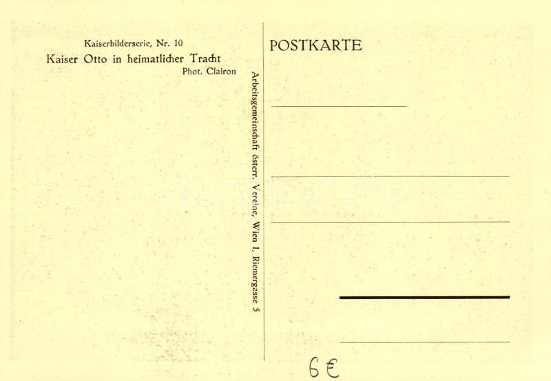 Leírás: Kaiser Otto in heimatlicher Tracht, Phot. Clairon; Kaiserbildserie Nr. 10