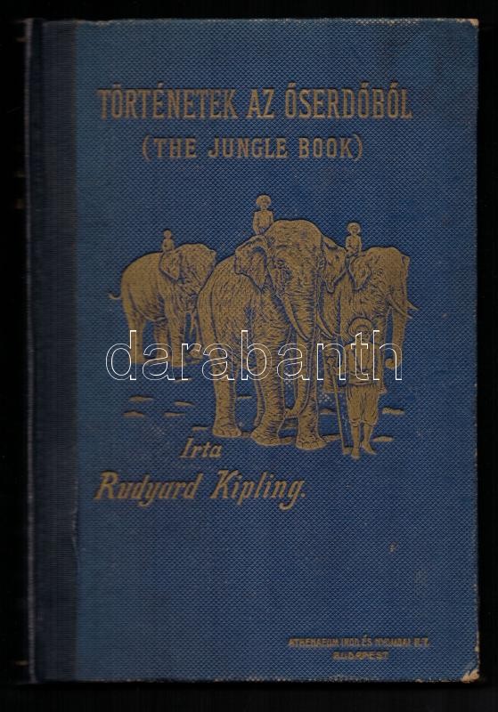 Rudyard Kipling: Történetek az őserdőből. (Jungle Book.) Fordította: Békési Gyula. Dr. Pallagi Gyula bevezetésével. Mühlbeck Károly rajzaival. Bp.,é.n., Athenaeum, 182 p. Kiadói javított gerincű aranyozott félvászon-kötés, kissé kopottas borítóval.