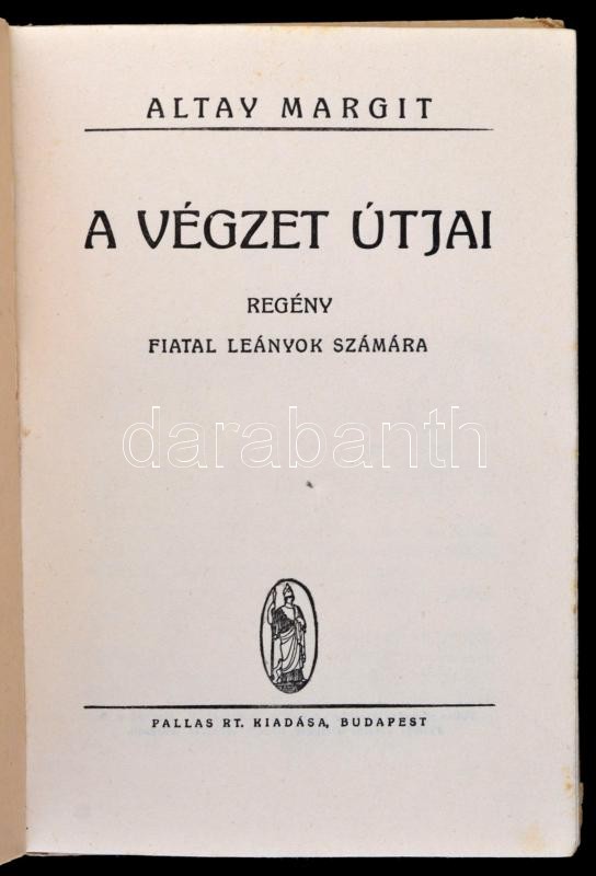 Altay Margit: A végzet útjai. Bp., é.n.,Pallas. Kiadói illusztrált fél... https://www.darabanth.com/hu/313-Gyorsarveres/313.0/Konyvek/Konyvek-Egyeb-ritkasagok~400014/Altay-Margit-A-vegzet-utjai-Bp-en-Pallas-Kiadoi-illusztralt-felvaszon-kotes-egeszo~II1615197