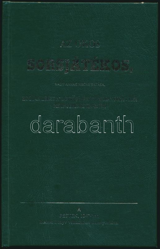 Az okos sorsjátékos, vagy annak megmutatása, hogyan lehet a' lottójátékot okosan folyvásti megnyerhetésre szorítani. Bp., én.,Szerencsejáték Rt.-Dinasztia Kiadó-ház Rt. Kiadói műbőr-kötés. Reprint.
