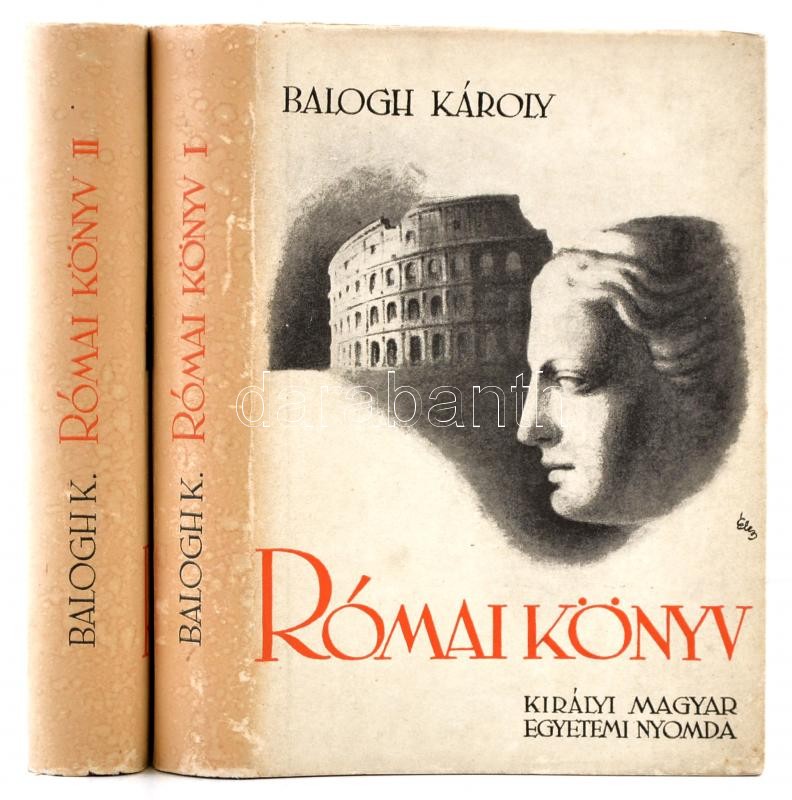 Balogh Károly: Római könyv 1-2. kötet. Bp.,1941, Kir. Magyar Egyetemi Nyomda. Fekete-fehér illusztrációkkal, két kihajtható térképpel. Kiadói félvászon-kötés, kiadói papírborítóban. Jó állapotban.