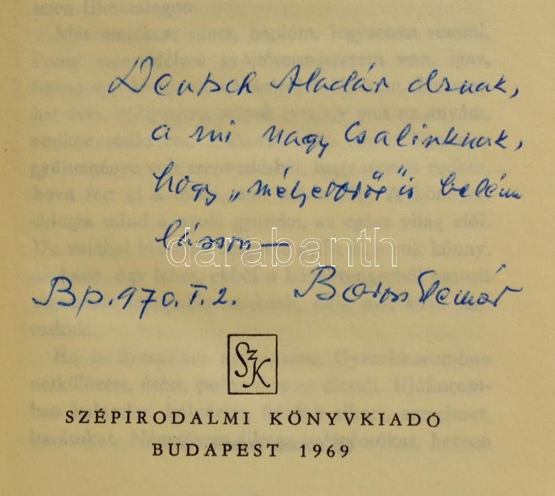 Boross Elemér: Velük voltam. Bp.,1969, Szépirodalmi. Kiadói egészvászon-kötés, kiadói papír védőborítóban. A szerző által dedikált Detusch Aladár főorvosnak.