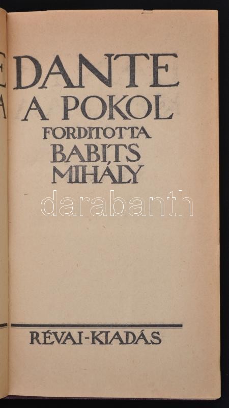 Dante: A pokol. Dante Komédiája I. Bp.,é.n., Révai, 300 p. Átkötött eg... https://www.darabanth.com/hu/313-Gyorsarveres/313.0/Konyvek/Konyvek-Egyeb-ritkasagok~400014/Dante-A-pokol-Dante-Komediaja-I-Bp-en-Revai-300-p-Atkotott-egeszvaszon-kotes~II1712857