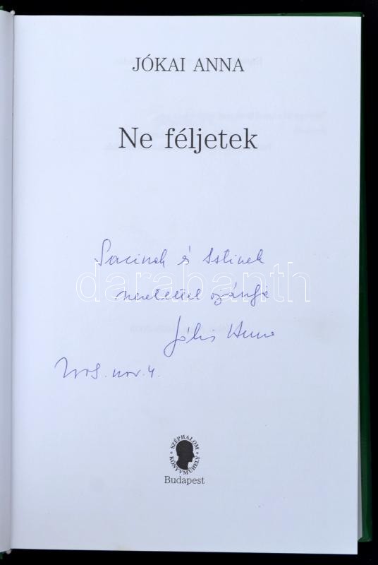 Jókai Anna: Ne féljetek. Bp.,2009, Széphalom Könyvműhely. Huszonegyedik kiadás. Kiadói papírkötés, kiadói papír védőborítóban, jó állapotban. A szerző, Jókai Anna (1932-2017) által dedikált.