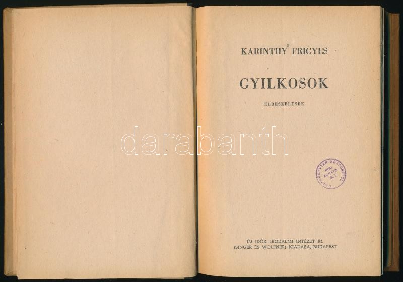 Karinthy Frigyes: Gyilkosok. Elbeszélések.Bp.,(1949), Új Idők (Singer ... https://www.darabanth.com/hu/313-Gyorsarveres/313.0/Konyvek/Konyvek-Egyeb-ritkasagok~400014/Karinthy-Frigyes-Gyilkosok-ElbeszelesekBp-1949-Uj-Idok-Singer-es-Wolfner-Kiadoi-fel~II1698793