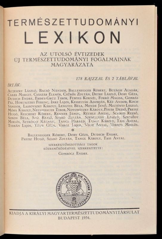Kincseskönyv. Gyakorlati tanácsadó a mindennapi élet természettudományi és technikai kérdéseiben otthon és a ház körül. Szerk.: Dr. Gombocz Endre. Bp.,1932, Királyi Magyar Természettudományi Társulat, VIII+4+868+XII p. Az otthon és gazdasága. Tanácsadó a családi ház építésének, felszerelésének, kert- és állatgazdaságának kérdéseiben. Szerk.: Gombocz Endre. Bp.,1933, Királyi Magyar Természettudományi Társulat, XII+800+XIII-XVI p. Természettudományi lexikon. Az utolsó évtizedek új természettudományi fogalmainak magyarázata. Szerk.: Gombocz Endre. Bp., 1934, Királyi Magyar Természettudományi Társulat, 795 p. Egységes kiadói egészvászon sorozatkötésben, kartontokban. Együtt Ritka.