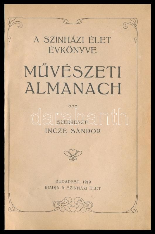 Szerkeszti Incze Sándor Bp. 1919. Szinházi Élet. 288 l. Gazdag egészoldalas és szövegközti képanyaggal, közte Vágó László műépítész szinháztervei, rajzai és a megépült Magyar Szinház külső és belső képei. Korabeli félvászon kötésben.