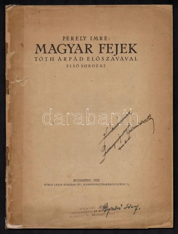 Tóth Árpád előszavával. Budapest, 1922. Kókai Lajos. [6] p. XXX t. [1] p. Többek között Gárdonyi Géza, Karinthy Frigyes, Kosztolányi Dezső, Móricz Zsigmond, Rippl Rónai József, Szabó Dezső portréival. Papírborító nélkül. Ragasztva
