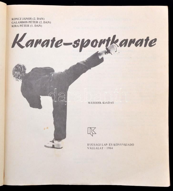 Koncz János, Galambos Péter, Kira Péter: Karate-sportkarate. Bp., 1984... https://www.darabanth.com/hu/313-Gyorsarveres/313.0/Konyvek/Konyvek-Sport-sakk-hegymaszas~400002/Koncz-Janos-Galambos-Peter-Kira-Peter-Karate-sportkarate-Bp-1984-Ifjusagi-Masodik-kiad~II1616716