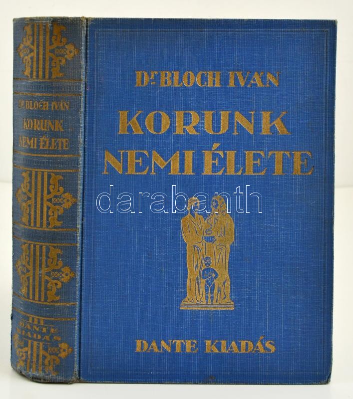 Dr. Bloch Iván: Korunk nemi élete, tekintettel korunk műveltségére. Bp. é.n. Dante. Kiadói, aranyozott egészvászonkötésben. Gerincen egy apró szakadás, egyébként jó állapotban.