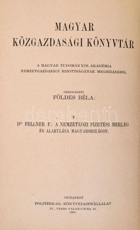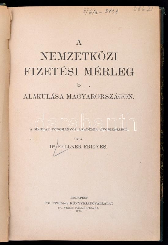 Dr. Fellner Frigyes: A nemzetközi fizetési mérleg és alakulása Magyaroszágon. Magyar Közgazdasági Könyvtár. Bp., 1908, Politzer-féle Könyvkiadóvállalat. Átkötött félvászon-kötés, néhány helyen ceruzás aláhúzásokkal.