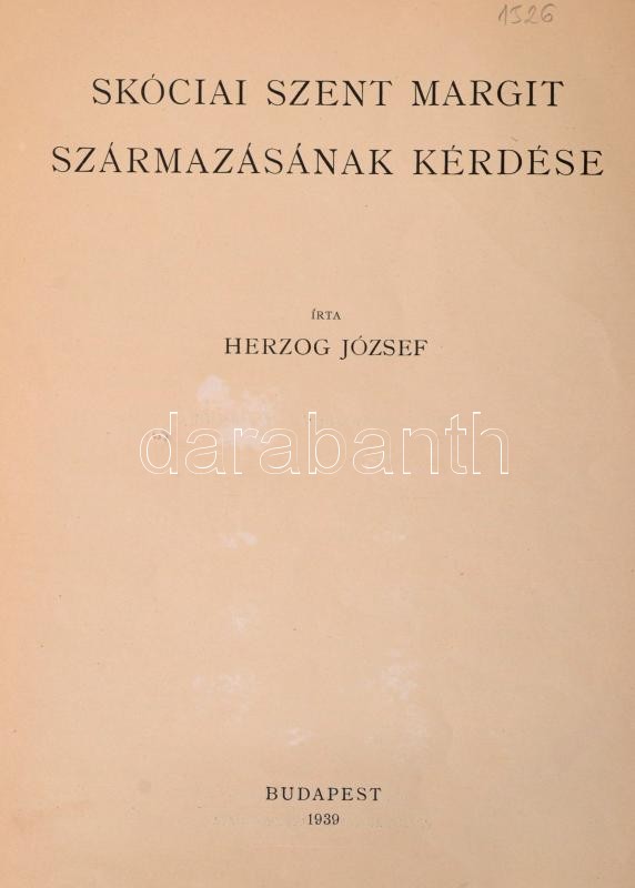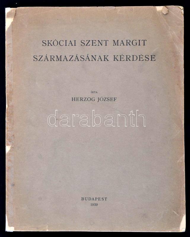 Herzog József: Skóciai Szent Margit származásának kérdése. Különlenyomat Turul LIII. számából. Bp., 1939, Franklin-Társulat-ny. Kiadói papírkötés, megviselt, ragasztott gerincű borítóval, de belül jó állapotban.