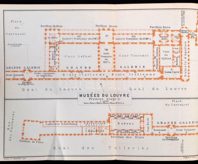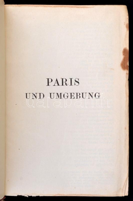 Karl Baedeker: Paris. Nebst Einigen Routen Durch Das Nördliche Frankreich. Handbuch für Reisiende. Leipzig,é.n., Karl Baedeker. Kiadói aranyozott egészvászon kötés, a borítója és a gerince kissé kopottas, a címlapja és egy térkép hiányzik, festett lapélekkel, térképekkel illusztrálva, német nyelven. / Linen-binding, the front page and one map lost, in German language.