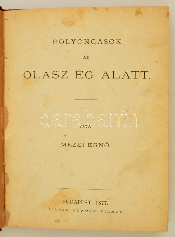 Mezei Ernő: Bolyongások olasz ég alatt. Bp., 1877. Kunossy Vilmos. Egé... https://www.darabanth.com/hu/313-Gyorsarveres/313.0/Konyvek/Konyvek-Utazas-helytortenet~400001/Mezei-Erno-Bolyongasok-olasz-eg-alatt-Bp-1877-Kunossy-Vilmos-Egeszvaszon-kotesben-Ritk~II1702870