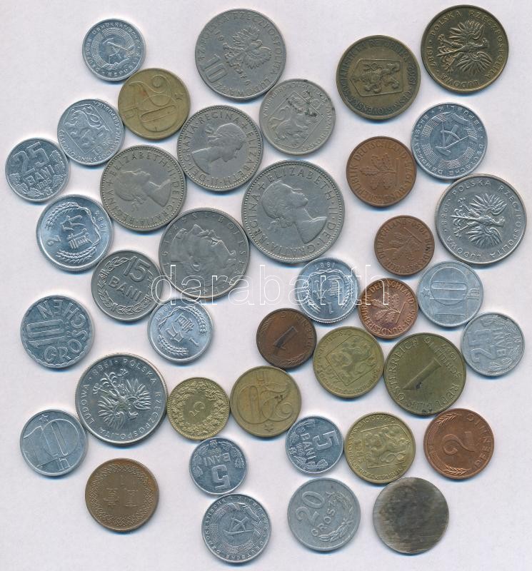 39db-os vegyes külföldi fémpénz tétel, közte Csehszlovákia, Kína, Lengyelország, Nagy-Britannia, Románia T:vegyes