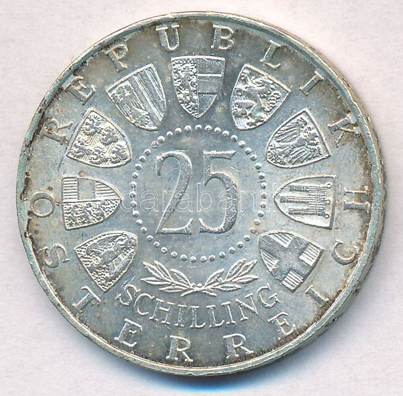 Austria 1956. 25 Schil... https://www.darabanth.com/hu/313-Gyorsarveres/313.0/Numizmatika/Kulfoldi-fem-es-ezustpenzek~300013/Ausztria-1956-25Sch-Ag-Mozart-T2--Austria-1956-25-Schilling-Ag-Mozart-CXF--Krause-KM232881~II1712354