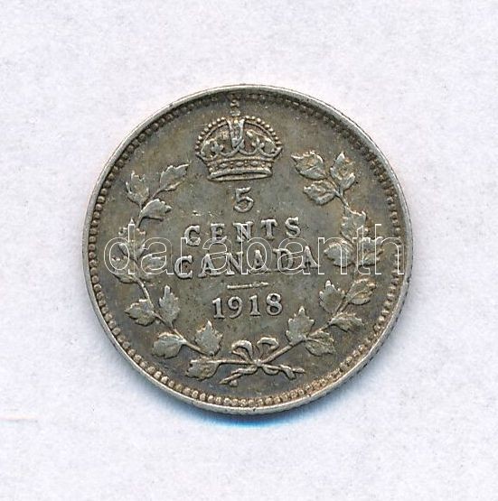 Canada 1918. 5 Cents Ag ... https://www.darabanth.com/hu/313-Gyorsarveres/313.0/Numizmatika/Kulfoldi-fem-es-ezustpenzek~300013/Kanada-1918-5c-Ag-V-Gyorgy-T2--Canada-1918-5-Cents-Ag-George-V-CXF--Krause-KM2322~II1713475