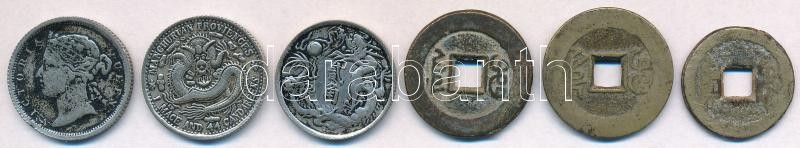 Leírás: Kína ~1800-1900. 6xklf fémpénz, az ezüstök modern hamisítványok T:2,2-