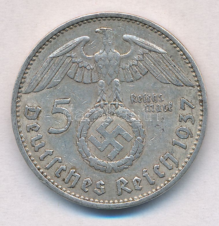 G... https://www.darabanth.com/hu/313-Gyorsarveres/313.0/Numizmatika/Kulfoldi-fem-es-ezustpenzek~300013/Nemet-Harmadik-Birodalom-1937A-5M-Ag-Hindenburg-T2-2---German-Third-Reich-1937A-5-Mark-Ag-Hind~II1711824