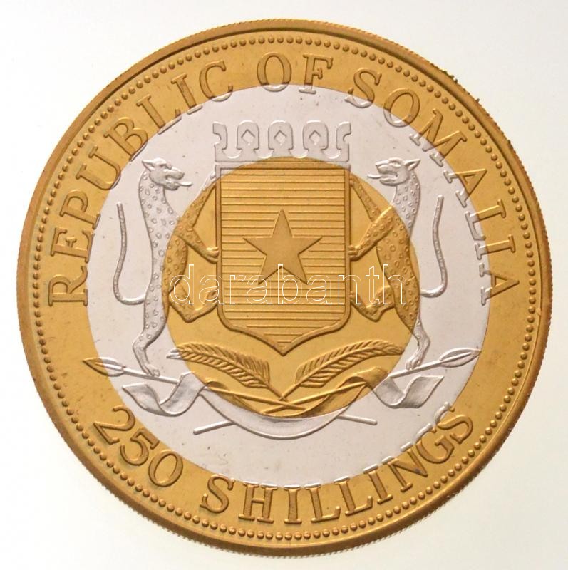 Leírás: Szomália 1998. 250Sh sárgaréz-Cu-Ni bimetál "Strucc" multicolor T:1-