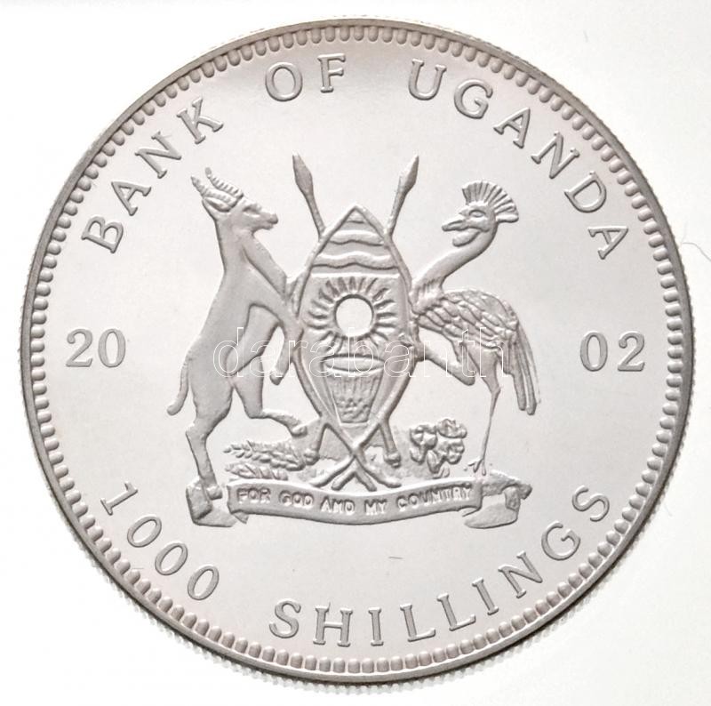 Uganda 2002. 1000 Shillings silver plated Br "Marine Life - Black fish with white dots" reverse multicolor painted C:PP