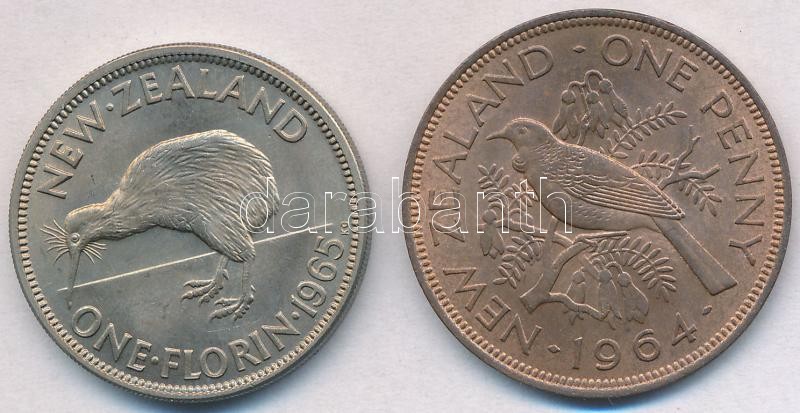 Leírás: Új-Zéland 1964. 1p Br "Tui" + 1965. 1F Cu-Ni "Kiwi" T:2,2-