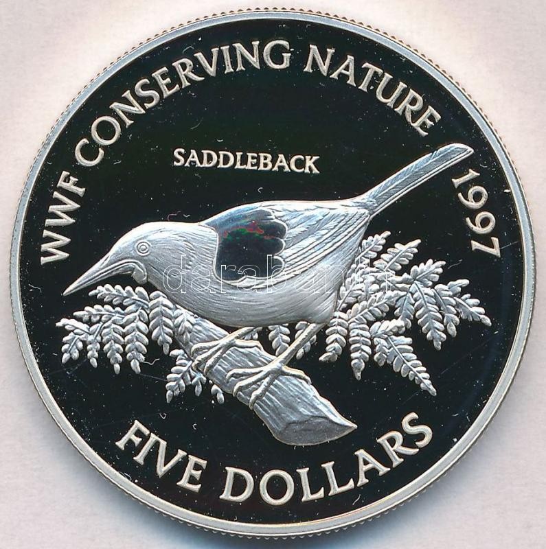 New Zealand 1997... https://www.darabanth.com/hu/313-Gyorsarveres/313.0/Numizmatika/Kulfoldi-fem-es-ezustpenzek~300013/Uj-Zeland-1997-5USD-Ag-Nyerges-madar-TPP--New-Zealand-1997-5-Dollars-Ag-Saddleback-bird-CPP~II1701294
