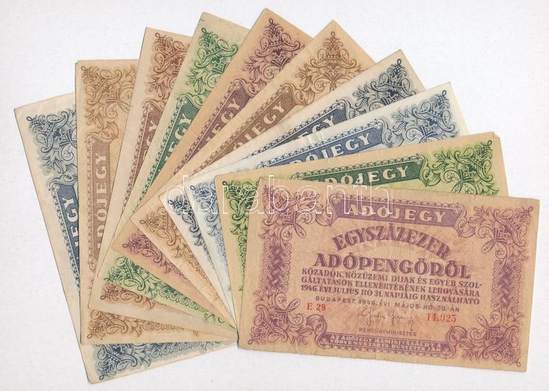 Leírás: 1946. 10db-os vegyes adópengő bankjegy tétel T:III,III-