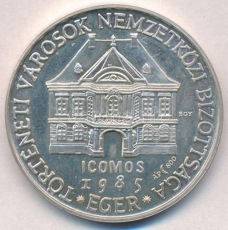 Leírás: Bognár György (1944-) 1985. "Történeti Városok Nemzetközi Bizottsága - Eger / Balassi Bálint" Ag emlékérem (34,24g/0.800/42,5mm)