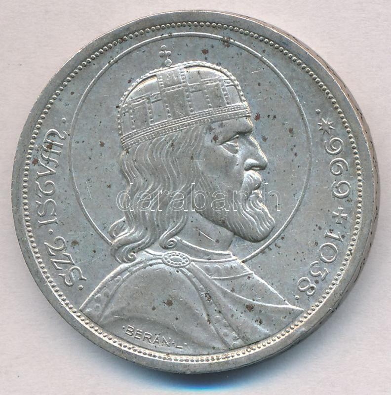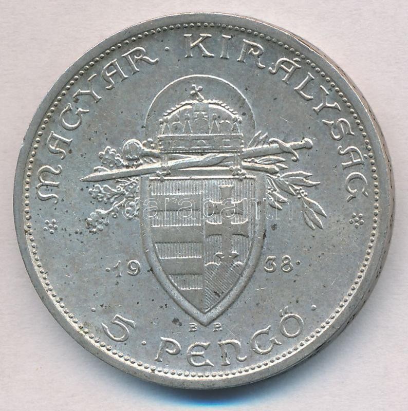 Leírás: 1938. 5P Ag "Szent István" T:2 ph., patina