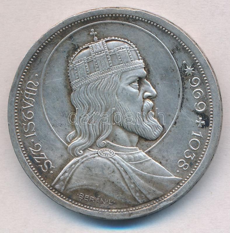 Leírás: 1938. 5P Ag "Szent István" T:2 ph., patina
