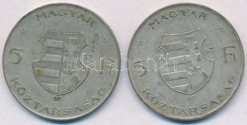 Leírás: 1947. 5Ft Ag "Kossuth" (2x) T:2-,3 patina