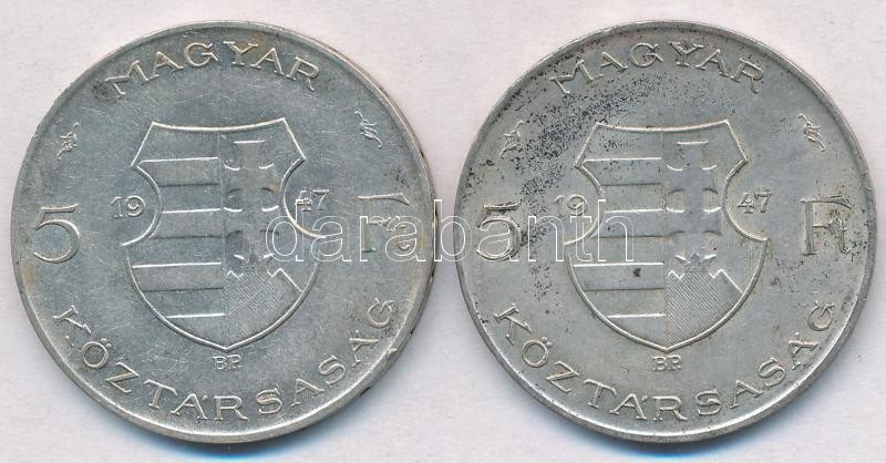 Leírás: 1947. 5Ft Ag "Kossuth" (2x) T:2-,3 patina