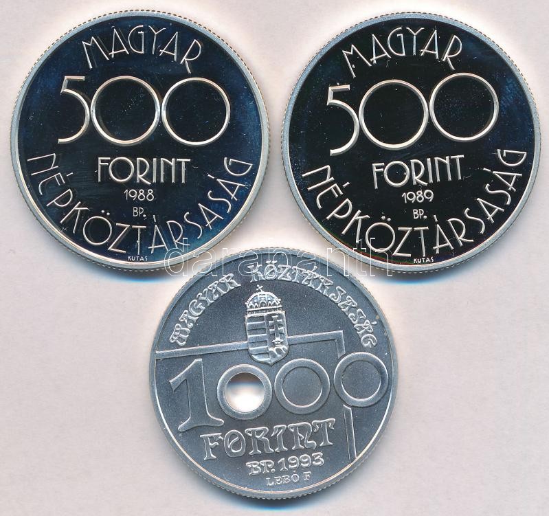 1988. 500Ft Ag "1990. Labdarúgó VB - 3 játékos" + 1989. 500Ft Ag "Labdarúgó Világbajnokság - Két játékos" + 1993. 1000Ft Ag "Labdarúgó VB" T:PP,BU ujjlenyomat