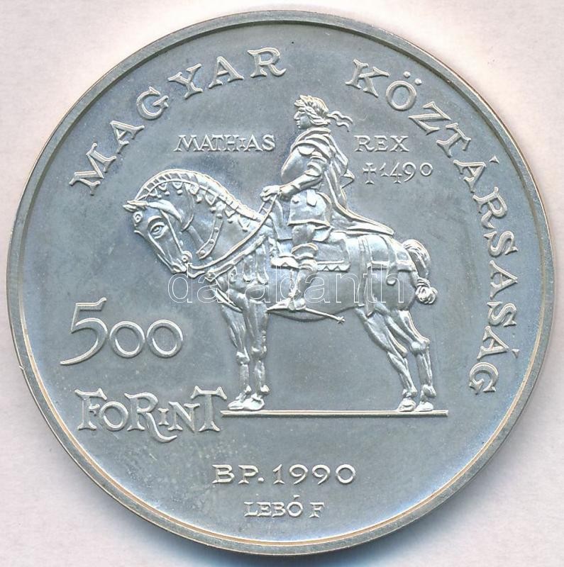 Leírás: 1990. 500Ft Ag "Mátyás király / Beatrix" T:BU