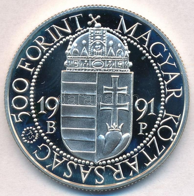 Leírás: 1991. 500Ft Ag "II. János Pál pápa látogatása" tanúsítvánnyal T:PP