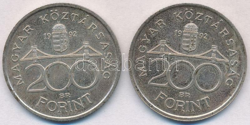 Leírás: 1992. 200Ft Ag "MNB" (2x) T:2 patina