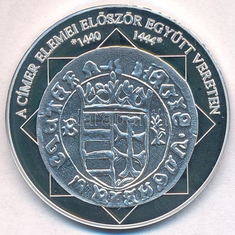 Leírás: DN "A magyar nemzet pénzérméi - A címer elemei először együtt egy vereten 1440-1444" Ag emlékérem tanúsítvánnyal (10,37g/0.999/35mm) T:PP fo.