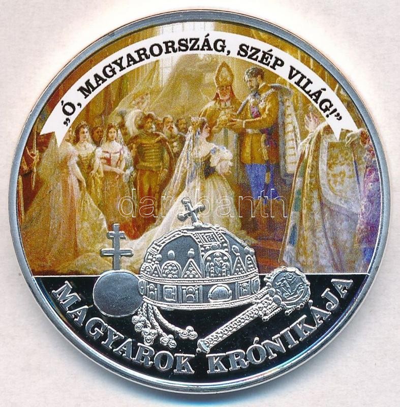 Leírás: DN "Magyarok Krónikája - Ó, Magyarország, szép világ! / 1907 5 korona" ezüstözött, multicolor Cu emlékérem (42mm) T:PP