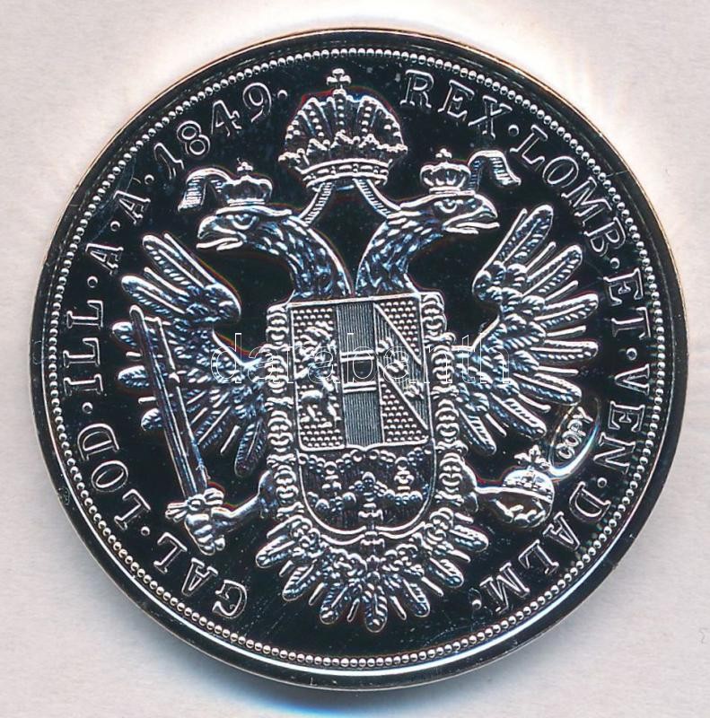 Leírás: DN "Osztrák-Magyar Monarchia pénzei utánveretben - 1849A Tallér" ezüstözött Cu, tanúsítvánnyal T:1