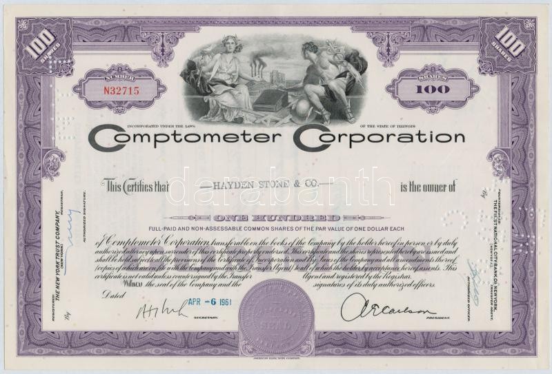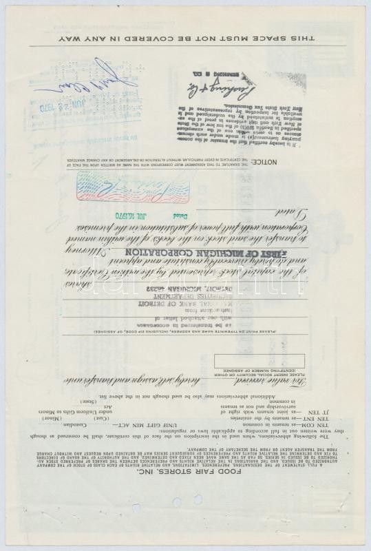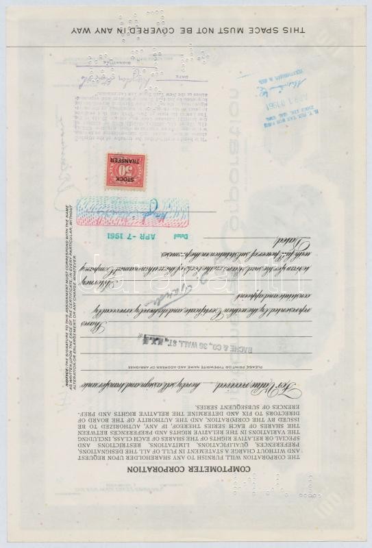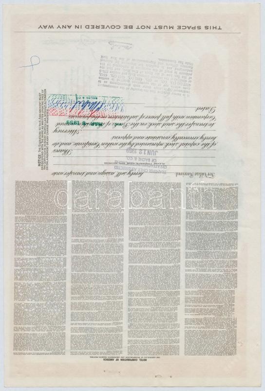 Amerikai Egyesült Államok 1957-1980. 10db-os vegyes részvény tétel, benne "The Anaconda Company", "Studebaker-Worthington", "United Park City Mines", "King's Department Stores" "Abacus Fund", "Fooda Fair Stores", "Comptometer Corporation", "Jantzen Inc", "Hotel Corporation of America" nagyrészt bélyegzésekkel, perforációval érvénytelenítve T:II-,III USA 1957-1980. 10pcs of shares, including "The Anaconda Company", "Studebaker-Worthington", "United Park City Mines", "King's Department Stores" "Abacus Fund", "Fooda Fair Stores", "Comptometer Corporation", "Jantzen Inc", "Hotel Corporation of America", mainly with cancellations and invalidated with perforations C:VF,F