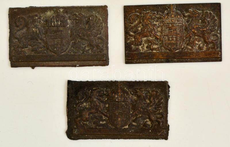 Leírás: cca 1920 Budapest címer kisméretű réz lapon, 3 db, 2,5x4 cm