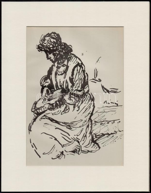 Leírás: Rippl-Rónai József (1861-1927): Gitáros hölgy, cinkográfia, papír, jelzett a cinkográfián, paszpartuban, 23×16 cm