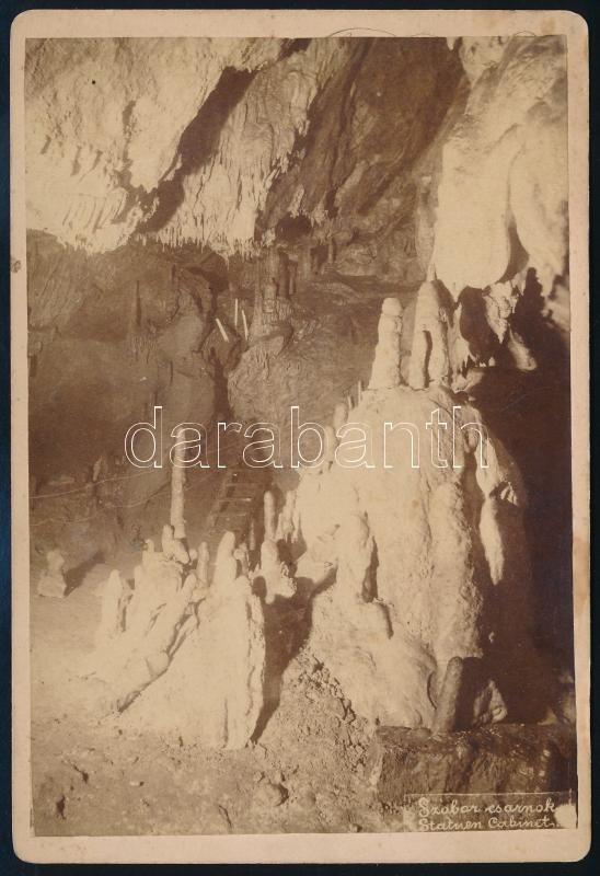 Leírás: 1887 A szepesbélai(Felvidék) cseppkőbarlang, Divald Károly feliratozott, keményhátú fotója, 16x11 cm / Spišská Belá, stalactite, vintage photo