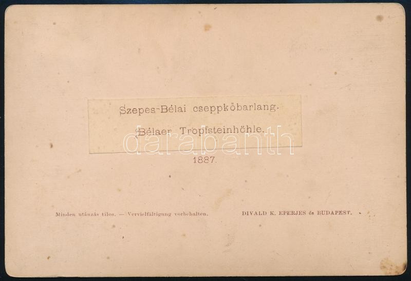 1887 A szepesbélai(Felvidék) cseppkőbarlang, Divald Károly feliratozot... https://www.darabanth.com/hu/314-Gyorsarveres/314.0/Festmeny-mutargy-papirregiseg-egyeb/Foto~100019/1887-A-szepesbelaiFelvidek-cseppkobarlang-Divald-Karoly-feliratozott-kemenyhatu-fotoja-~II1723274