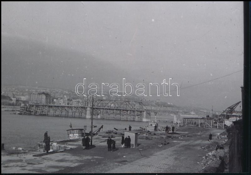 1945 Budapest, a Kossuth híd építése, vintage diapozitív felvétel Kerny István (1879-1963) budapesti fotóművész hagyatékából, és az erről készült mai nagyítás, 24x36 mm és 9x12,5 cm