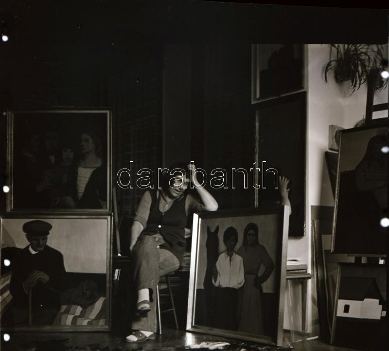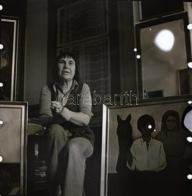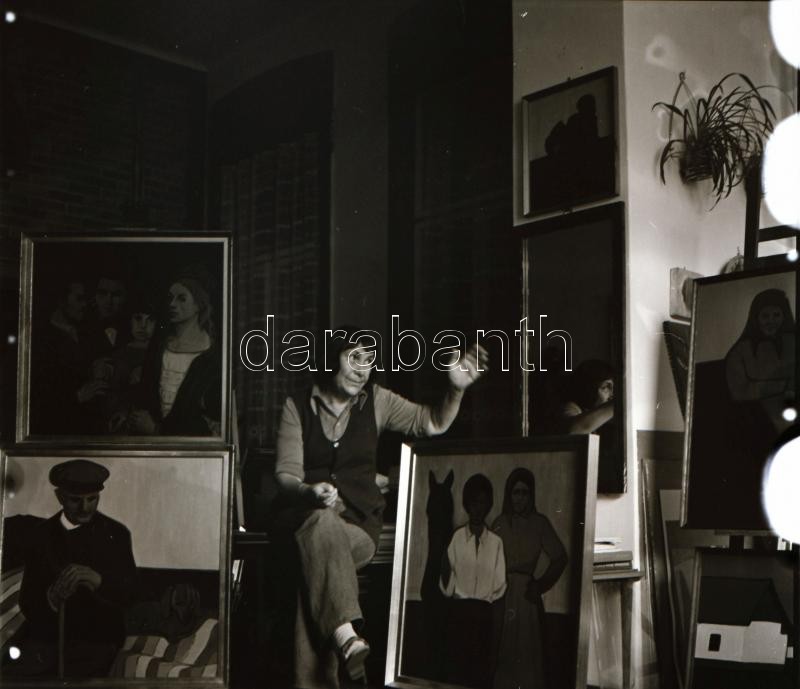 Leírás: 1983 Gyula, Látogatás Koszta Róza festőművész műtermében, 12 db szabadon felhasználható vintage negatív, 6x6 cm