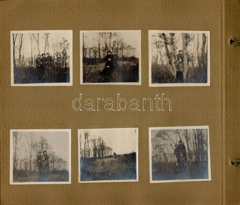 Leírás: cca 1910-1920 Családi fotóalbum 106 beragasztott fotóval, városi, vidéki életképek, tenisz, vadászat, Temesvár, stb., különböző méretekben