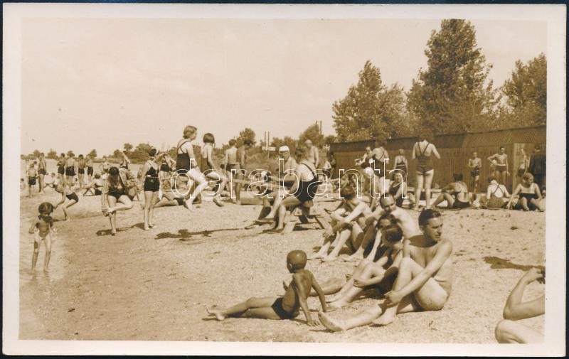 cca 1930 Fürdőzők a strandon, fotólap, 9x14 cm https://www.darabanth.com/hu/314-Gyorsarveres/314.0/Festmeny-mutargy-papirregiseg-egyeb/Foto~100019/cca-1930-Furdozok-a-strandon-fotolap-9x14-cm~II1722275