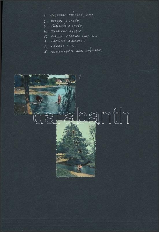 cca 1941 Szépen színezett amatőr emlékképek albumlapon, 9 db vintage f... https://www.darabanth.com/hu/314-Gyorsarveres/314.0/Festmeny-mutargy-papirregiseg-egyeb/Foto~100019/cca-1941-Szepen-szinezett-amator-emlekkepek-albumlapon-9-db-vintage-foto-6-5x5-cm-es-11-5x7~II1678391